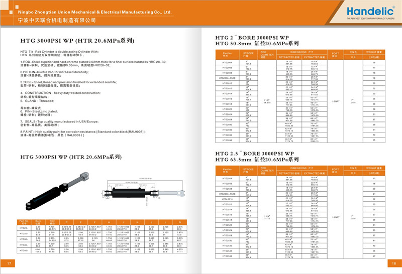 為適應(yīng)市場(chǎng)對(duì)高品質(zhì)工業(yè)標(biāo)準(zhǔn)油缸的需求,中天公司近期推出了“海德力克”品牌系列標(biāo)準(zhǔn)油缸,產(chǎn)品涉及拉桿油缸和焊接型雙作用油缸。該系列產(chǎn)品結(jié)構(gòu)簡(jiǎn)單,客戶可按需求自行選購(gòu)行程、缸徑、工作壓力等并安裝。“海德力克”系列產(chǎn)品全部采用高品質(zhì)進(jìn)口密封件,高品質(zhì)原料,并且嚴(yán)格按照國(guó)際標(biāo)準(zhǔn)精工制作。“海德力克”承諾提供多達(dá)18個(gè)月的質(zhì)量保證,并提供專業(yè)安裝指導(dǎo)和技術(shù)支持,歡迎選購(gòu)。
